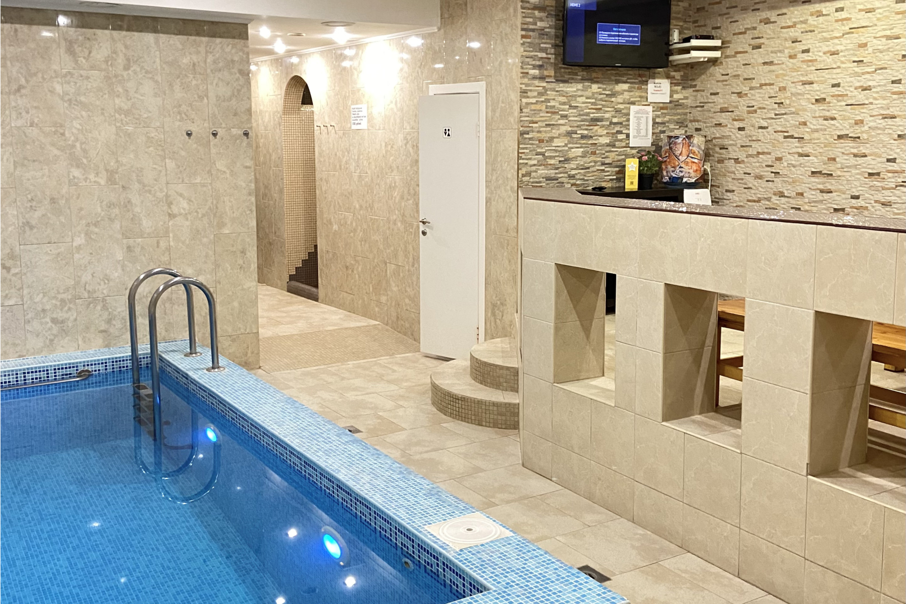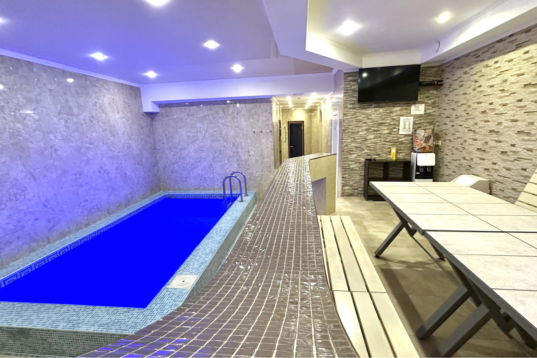 - Бассейн 4.70х2.50 метра - с противотоком глубиной 1,7 метра, 4.70х2.50 с теплой водой до 28 градусов. (вода проходит очистку через кварцевые фильтры, облучается ультрафиолетом и обеззараживается озонатором)